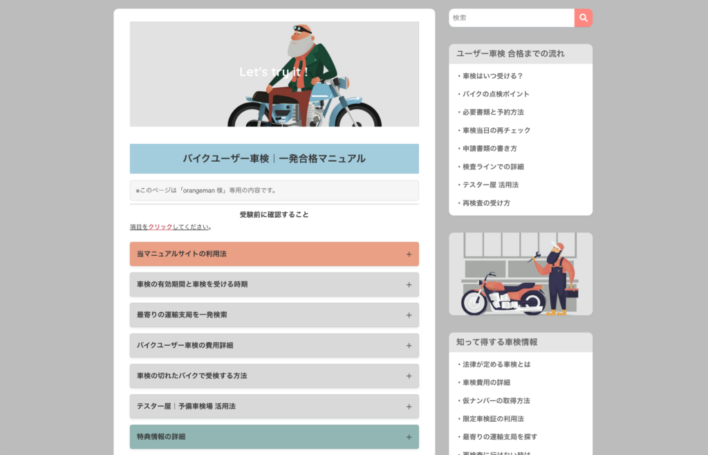 当マニュアルが提供する バイク車検合格 のための詳細情報です。
